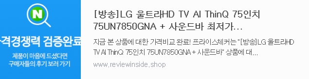지금 본 상품에 대한 가격비교 완료! 프라이스체커는 "[방송]LG 울트라HD TV AI ThinQ 75인치 75UN7850GNA + 사운드바"